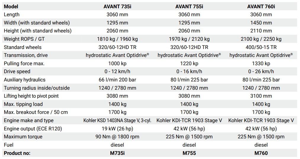 Avant 700 series offers strong and real multi-use loaders for jobs where high lift capacity and/or drive speed is needed, yet at the same time the machine shall be as compact as possible. The 700 series is the perfect tool for street cleaning and other property maintenance tasks on narrow streets and yards in the cities, lifting and handling bales, etc. on farms, handling paving stones, moving materials on construction sites, and in many other applications. Easy transportation with a car trailer and a high drive speed enable quick transfers between work sites.